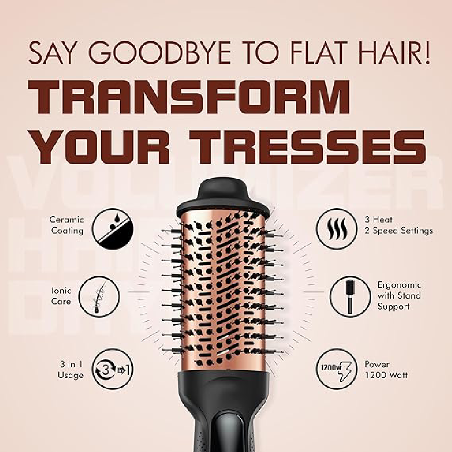 Style with ease using 5 attachments—Hollow Brush, Curler, Straightener Brush, and Concentrator. Powered by 1200W with 360° airflow and a 30,000 RPM motor for smooth, quiet, and versatile results.