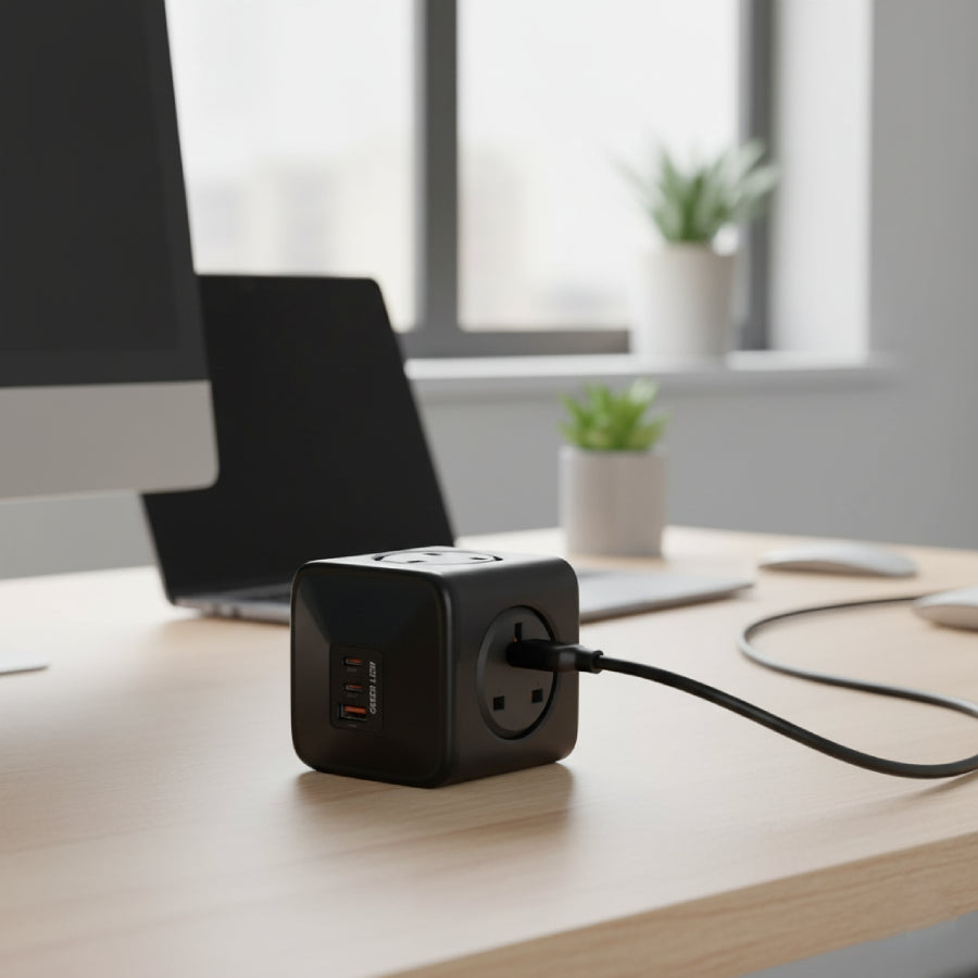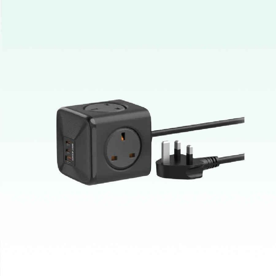 The Green Lion 7-in-1 Compact 33W PPS Power Socket offers 4 UK plug sockets, 2 USB-C, and 1 USB-A with 3250W capacity, fast charging, flame-retardant build, and universal compatibility.