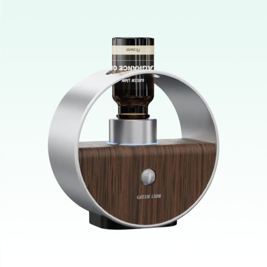 The Green Lion Calmora Fragrance Diffuser with 1000 mAh battery, 4 mist modes, motion sensors, and silent atomization fills large rooms with soothing aroma and ambience lighting for up to 8 days.