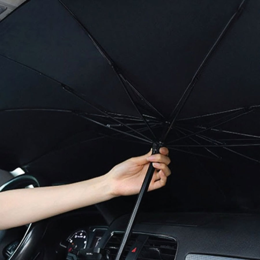 Green Lion Car Windshield Umbrella keeps your car cool by blocking sunlight and UV rays. It's lightweight, compact, retractable, and comes with a leather storage pouch—ideal for cars, SUVs, and commercial vehicles.