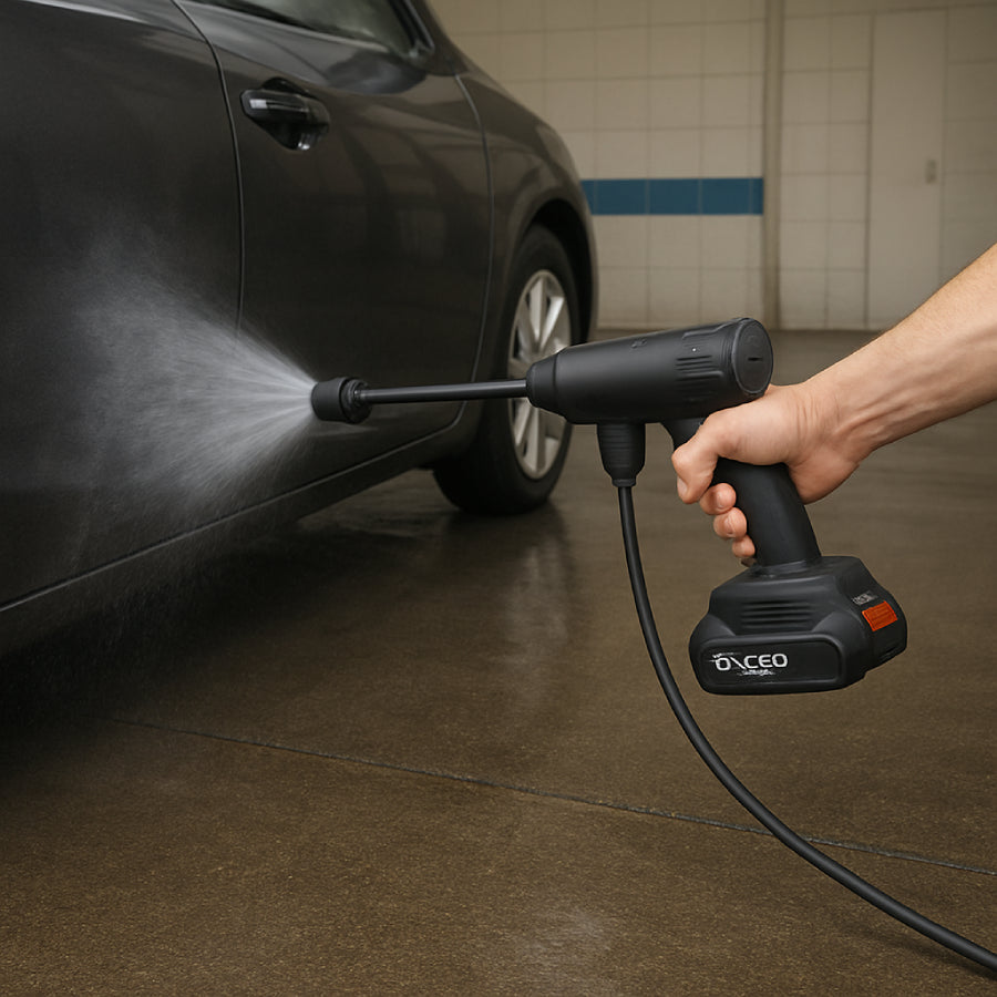 The Green Lion CX240 Jet Washer delivers 36 Bar pressure with 4 L/min water flow, an 8m spray range, and a 6000mAh battery for powerful, portable, and efficient outdoor cleaning of cars, patios, and equipment.