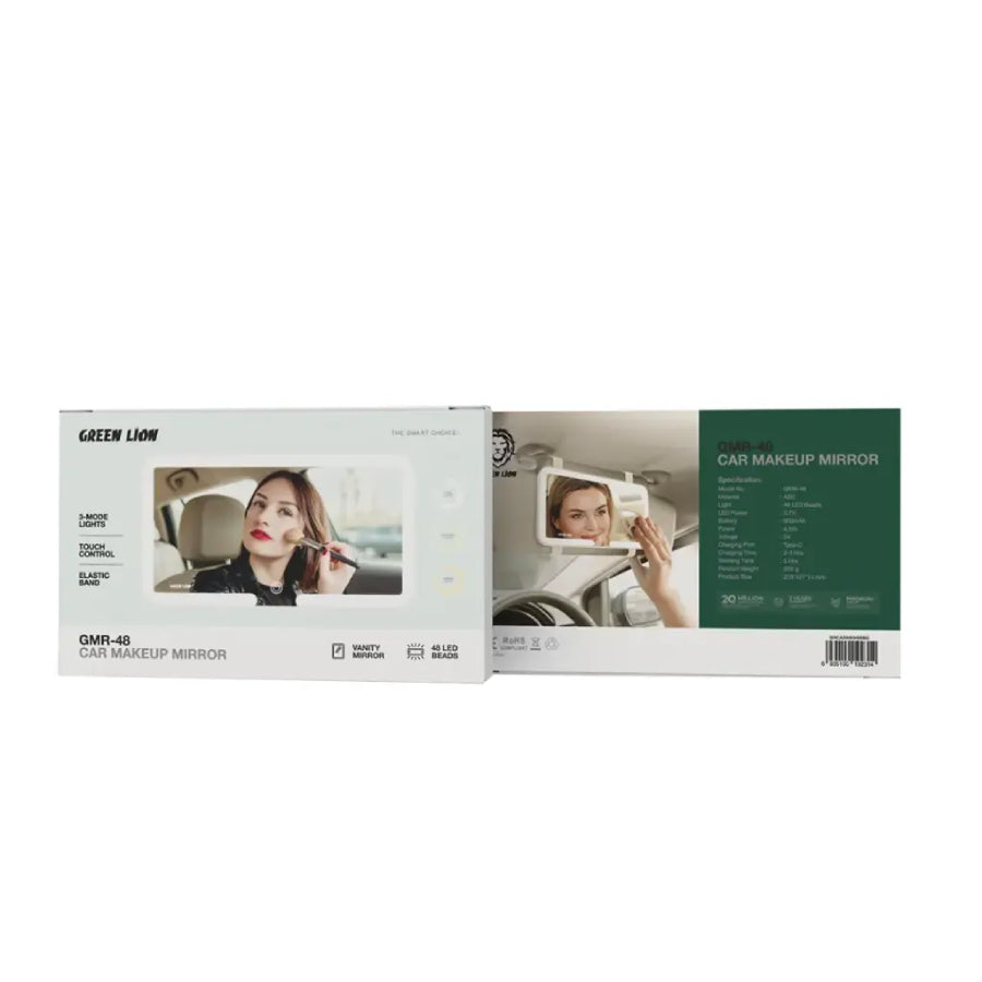 The Green Lion GMR-48 Car Makeup Mirror with 48 LED lights, touch control, and Type-C rechargeable battery offers bright, portable, and stylish on-the-go touch-ups.