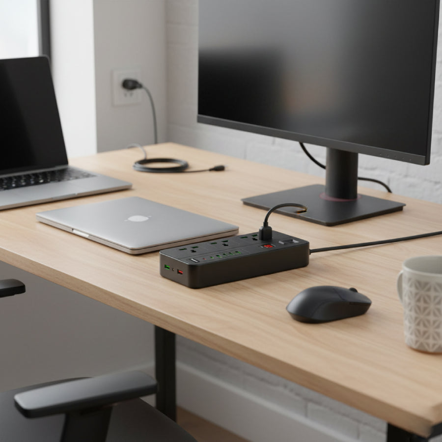 - Outlets: 3 × Sockets + 4 × USB-A + 2 × USB-C