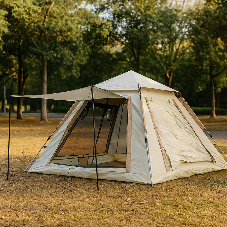 The Green Lion GT-6 Camping Tent with ventilated mesh, UV protection, windproof ropes, and waterproof 210D Oxford fabric offers a spacious, durable, and easy-to-carry shelter for outdoor adventures.