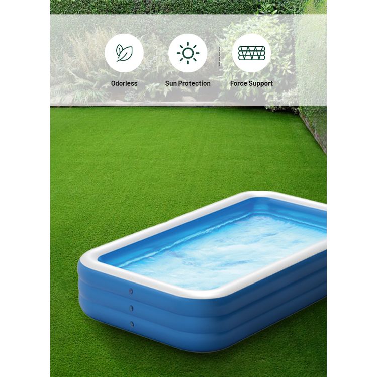The Green Lion Inflatable Big Swimming Pool holds 1000 liters, made of durable PVC, perfect for family fun and lasting summer enjoyment.