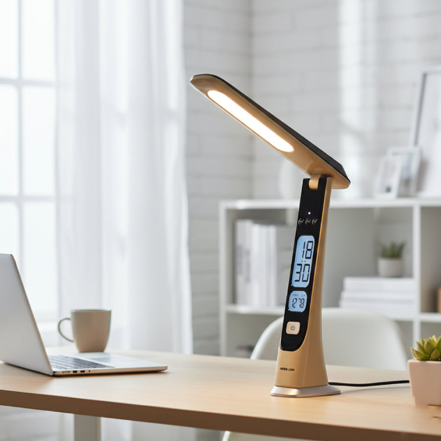 Versatile LED lamp with 3 light modes, dimming, clock display, and rechargeable battery deal for any space.