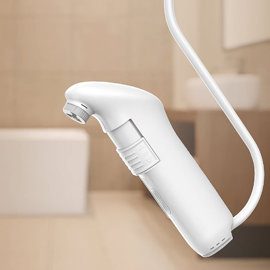 The Green Lion Portable Bidet Pro features a 1600 mAh battery for 70 minutes of use, 2.3L tank, 2 spray modes, adjustable nozzle, 1.2m hose, IPX6 waterproof rating, and fast Type-C charging — ideal for travel, camping, and daily hygiene.
