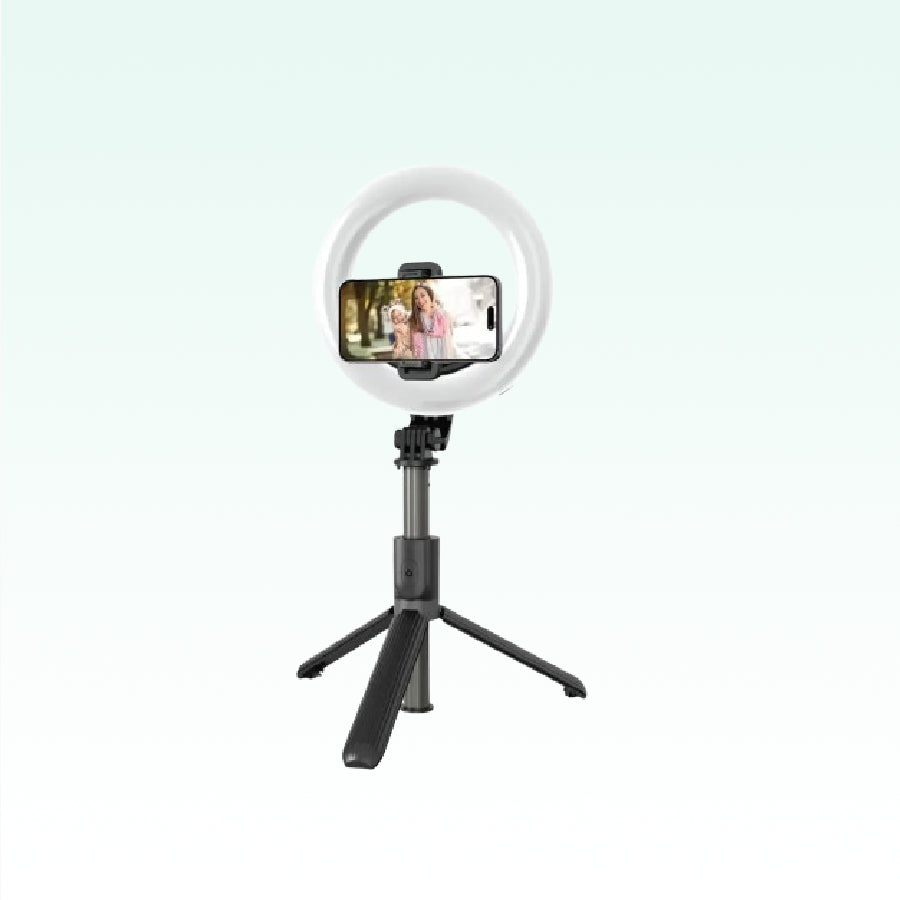 The Green Lion Ring Light 6" Selfie Stick is a durable, lightweight, and portable accessory featuring 3 light modes, 9 brightness levels, 360° rotation, tripod legs, and a Bluetooth remote for perfect hands-free selfies and content creation.