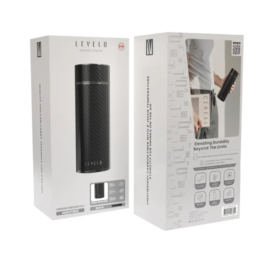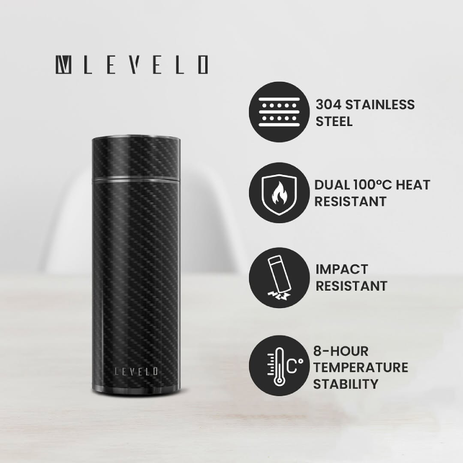 The Levelo AeroFiber 350ML Bottle features a sleek carbon fiber design with durable 304 stainless steel. It’s leak-proof, impact-resistant, and keeps drinks hot or cold for up to 8 hours—perfect for any activity.