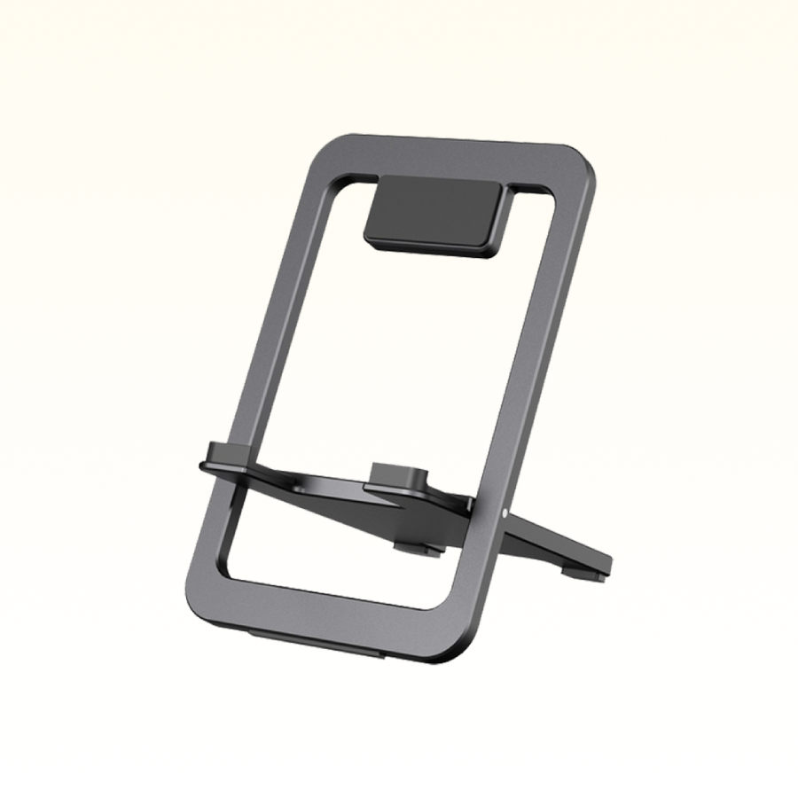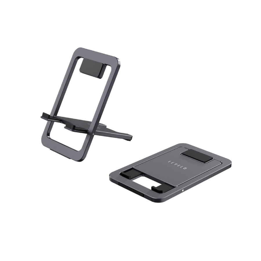 The Levelo Airlift Foldable Phone Stand features a sturdy aluminum build, foldable design, and silicone base for stability. Lightweight and stylish, it's perfect for calls, movies, or charging on the go.