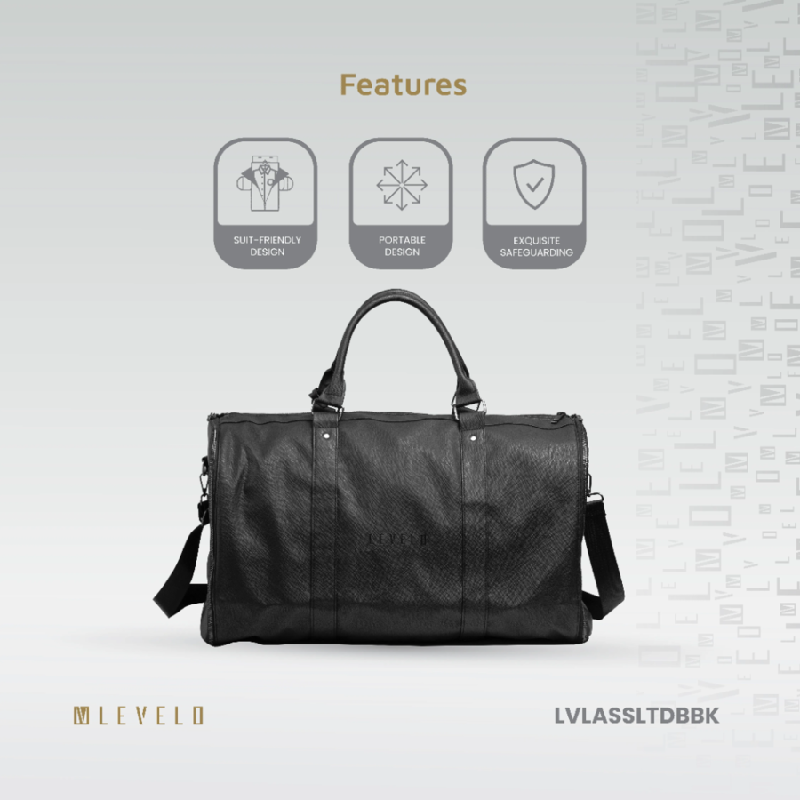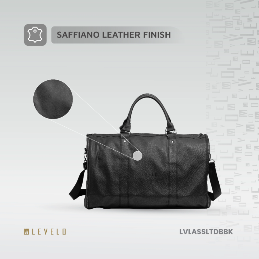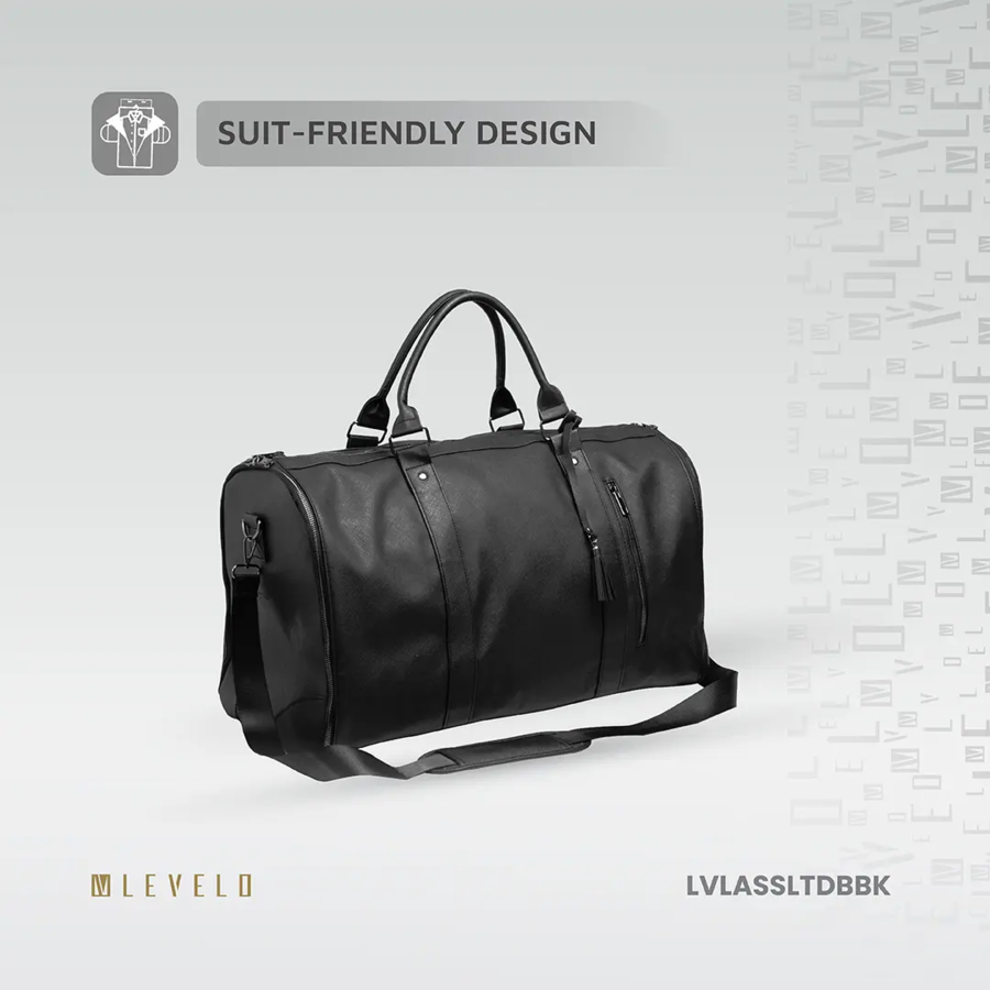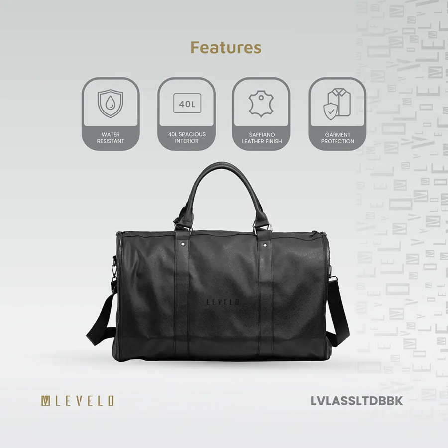 The Levelo AllinStyle Duffle Bag features water-resistant Saffiano leather, 40L capacity, and garment protection—perfect for stylish, wrinkle-free travel.