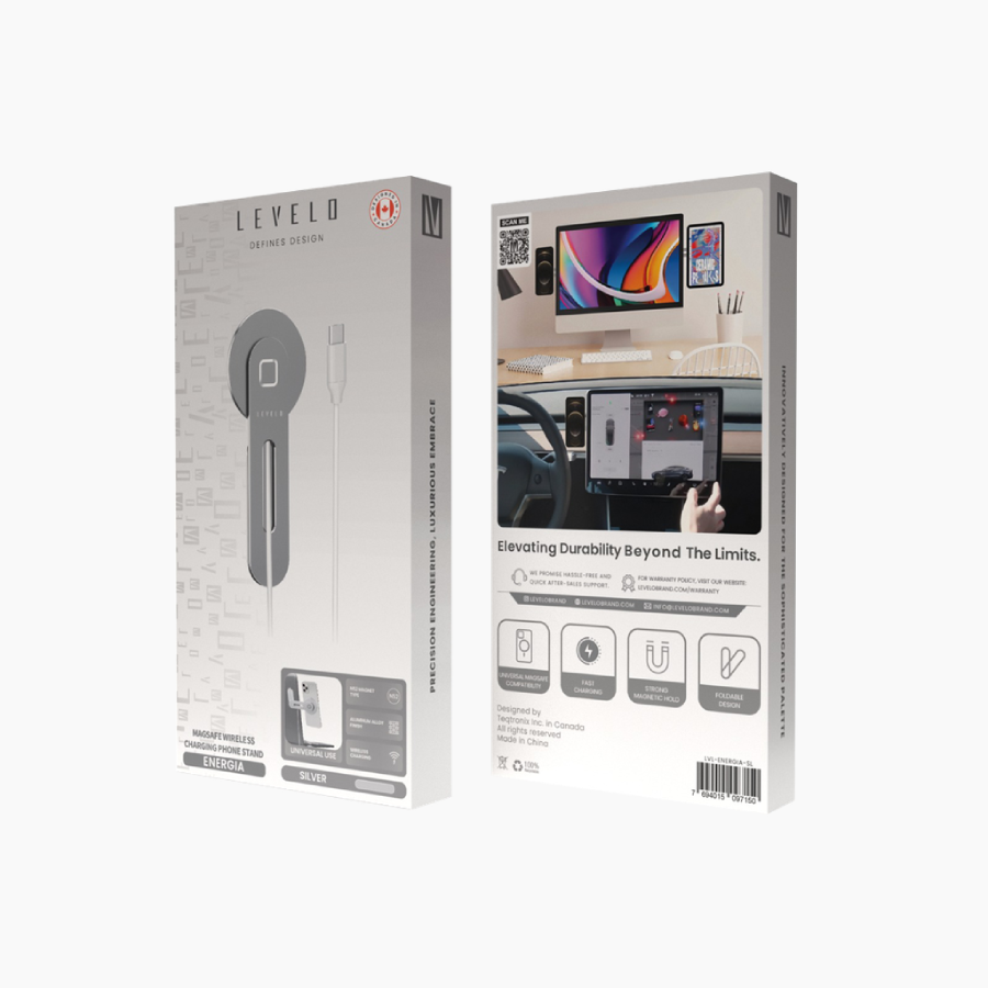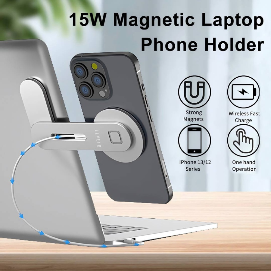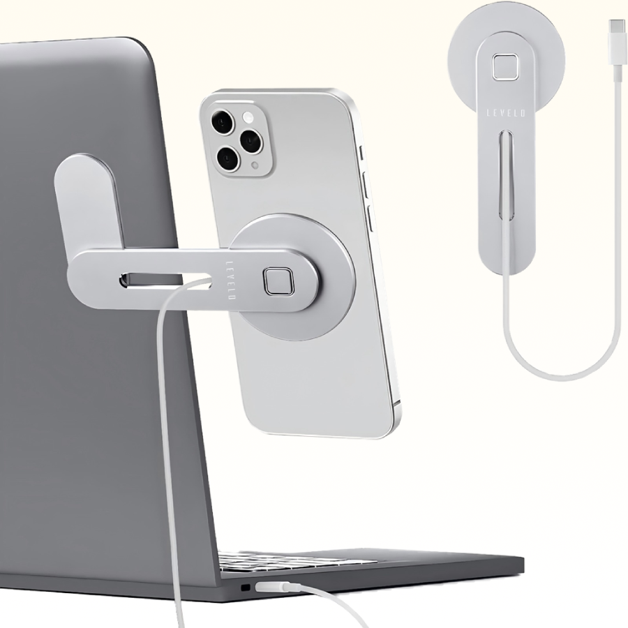 The Levelo Energia MagSafe Holder offers fast wireless charging with a strong N52 magnet and sleek aluminum finish—perfect for travel, work, or daily use.