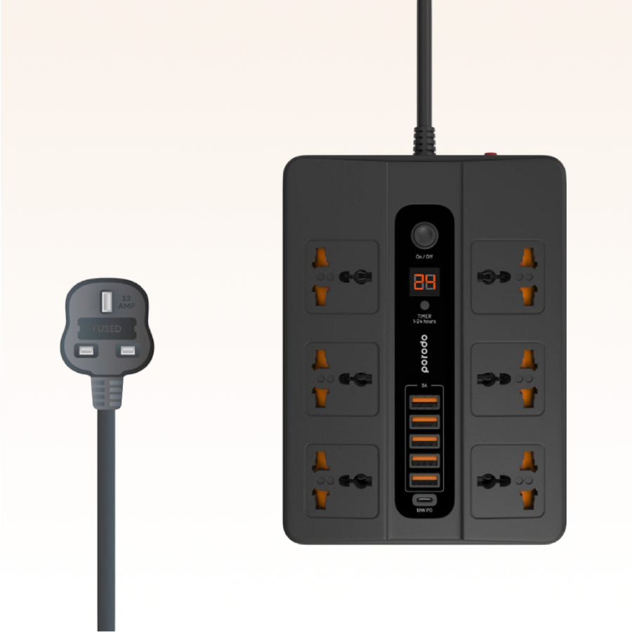 With 6 AC outlets, 5 USB-A ports, 18W USB-C PD, and safety features, this hub provides fast, efficient charging in a compact, fire-resistant design.