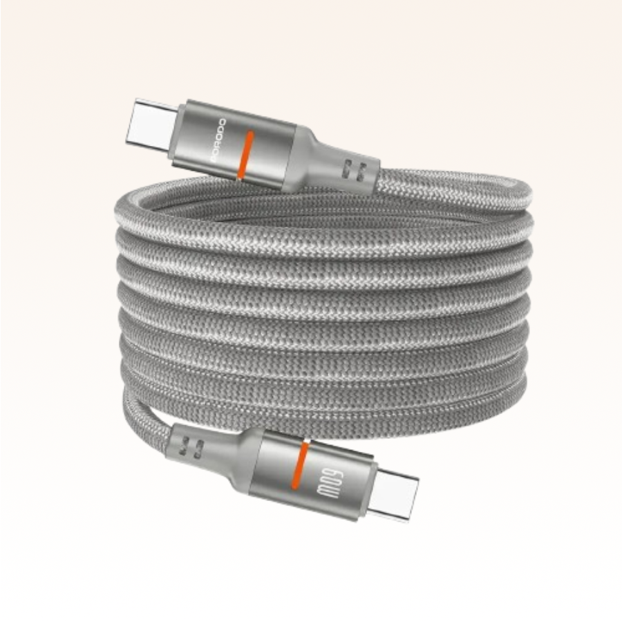 The Porodo USB-C to USB-C LED Light Cable is a durable 3m braided cable that supports 60W PD fast charging and data transfer. The LED light enhances visibility in dark settings, while the tangle-free design ensures durability and efficient charging for all Type-C devices.
