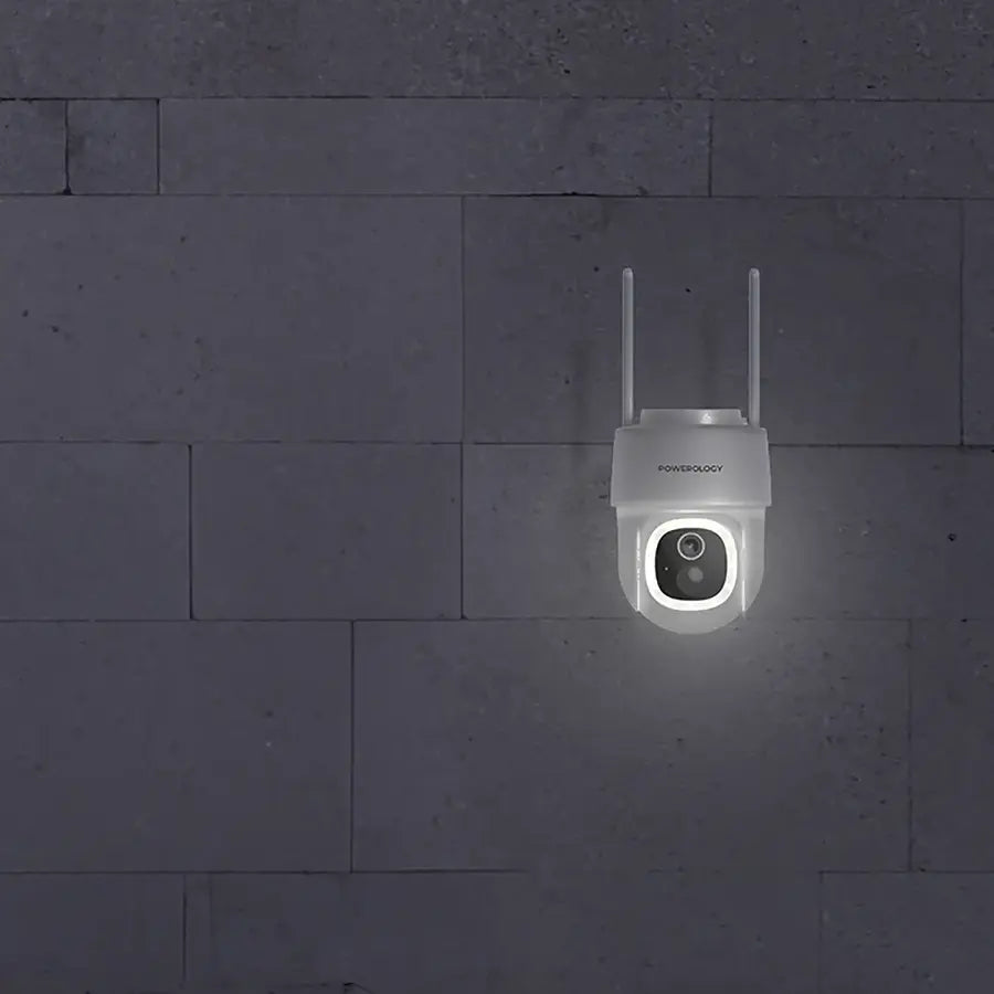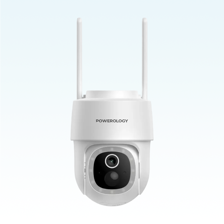Secure your outdoors with Powerology’s Solar Pan & Tilt Camera – 2304x1269P, 108° wide view, night vision, motion detection, two-way audio, solar 5200mAh battery, IP65 rating, and app control for 24/7 eco-friendly monitoring.